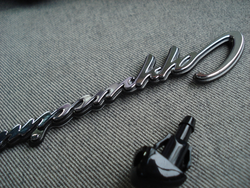 黒いプラスチックパーツは先日同様エンジンルーム内の部品ですね。 小さいのは先にお預かりご依頼頂いていたウィンドウォッシャーノズルです。カプチーノは一個だけみたいですね。 で、あとはメッキエンブレムですね。小さいですがメッキ部品ですのでこれの下地処理が一番面倒そうですね。ただそれだけにマジョーラカラーになった姿を見るのが楽しみです。