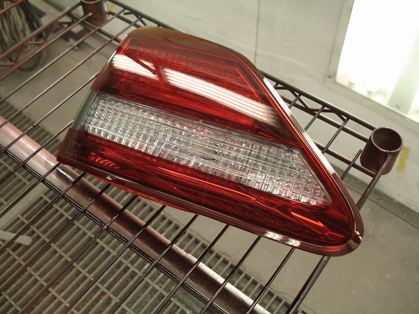 ただそれでも仕事として成り立つようになったのは、ある程度の個数をまとめて一緒に塗れるようになった事です。 例えばテールランプの塗装では、最初の頃は1個でも塗装ブースを稼働させていたりしましたが、今では最低でも2セットを一緒に塗る事で作業コストを下げることが出来ています。塗装ブースは車が丸々入って塗れる大きなスペースですから、テールランプ2個では寂し過ぎますよね(と言うかそれだと赤字です…)。