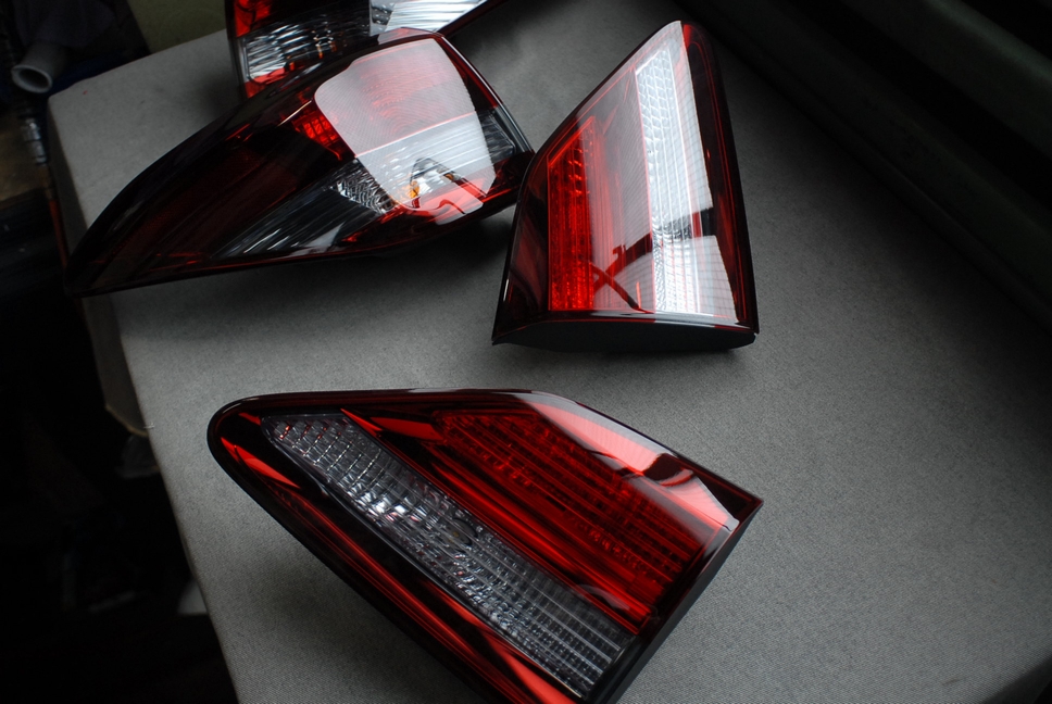 お待たせしました!レクサスのテールランプ一式、レッドキャンディー+クリアー抜き+全体に薄めスモークで完成です。