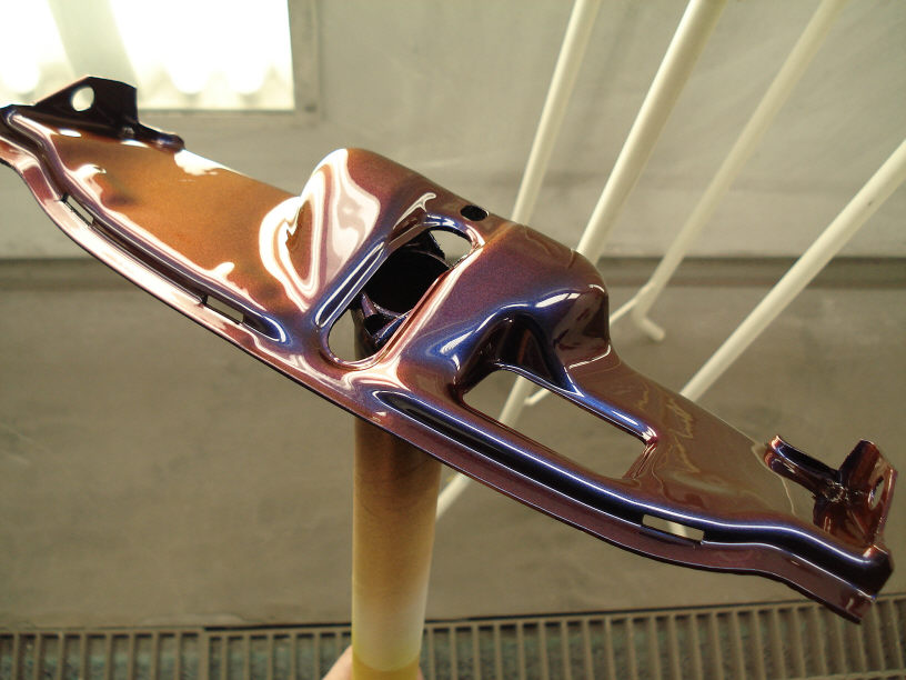 元々は艶消しシルバーが塗られて状態で、今回はレッドキャンディーとパープルメタリックでご依頼頂きました。
