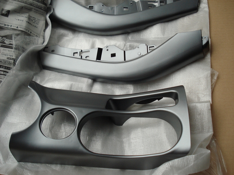 最初の状態としてはポリウレタン樹脂むき出しでしたので、一旦表面を研磨して2液ウレタンサフェーサーで下地を作っています。画像の白い(グレー)のがそうですね。