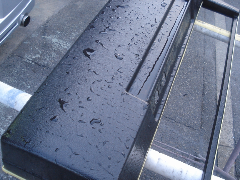 ウォッシュコンパウンドとスコッチで処理する前の状態です。 これでも溶剤系での脱脂は済んでいるのですが、綺麗に水を弾いてくれてますね(苦笑)。