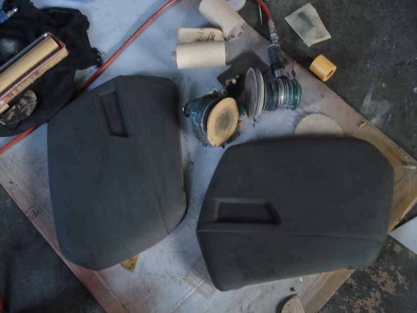 純正の状態だと表面がザラザラとした「梨地」なので、表面は#240のダブルアクションで削り落とします。