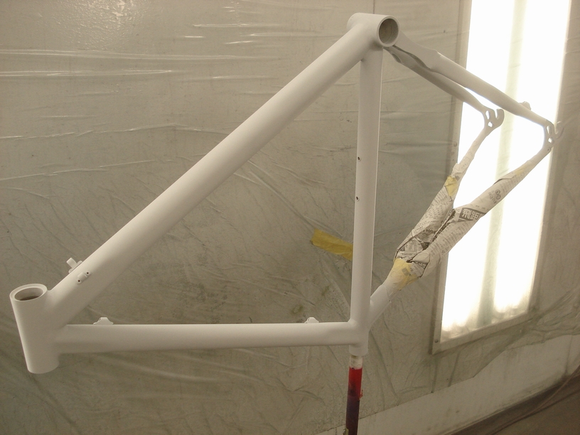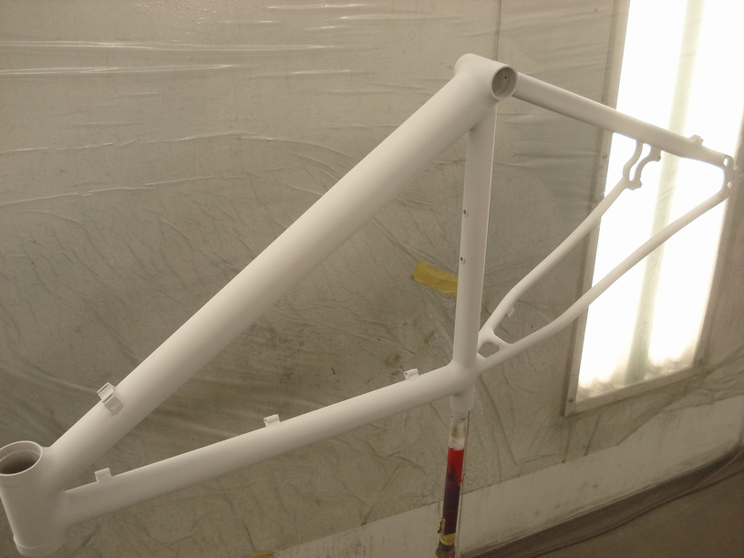 -1298- アルミ&カーボンフレームも本塗り開始です。