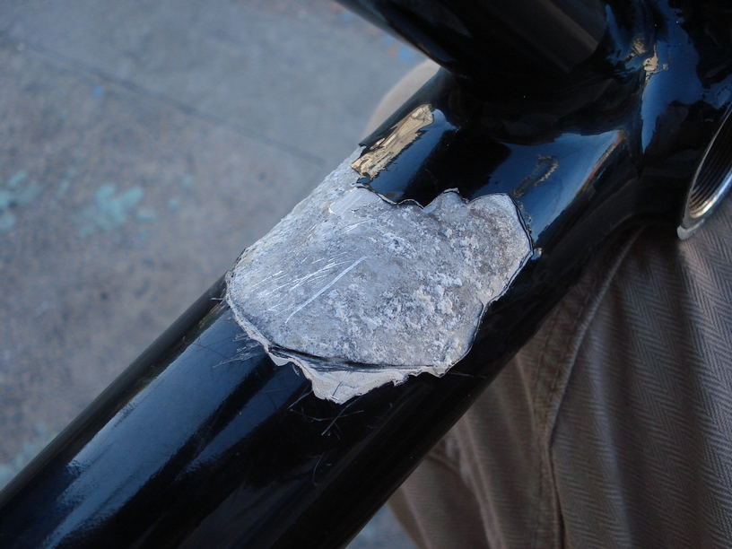 先ほどの画像は「トップチューブ」とシートチューブの継ぎ目部分で、あちらはあれでもまだマシな状態です。