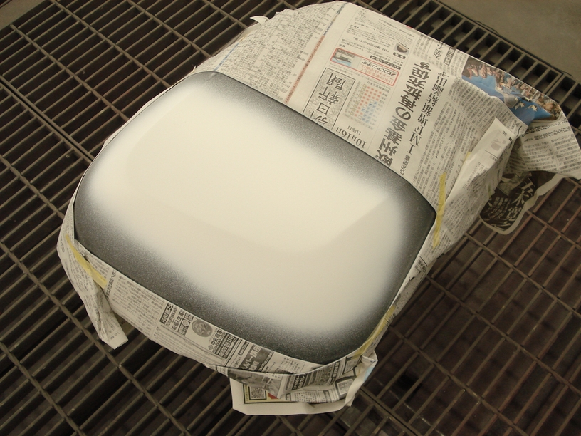 -1403- BMWのパニアケース蓋 本塗り準備完了です。