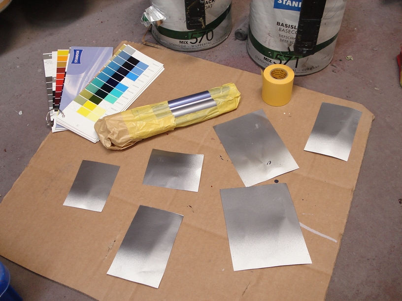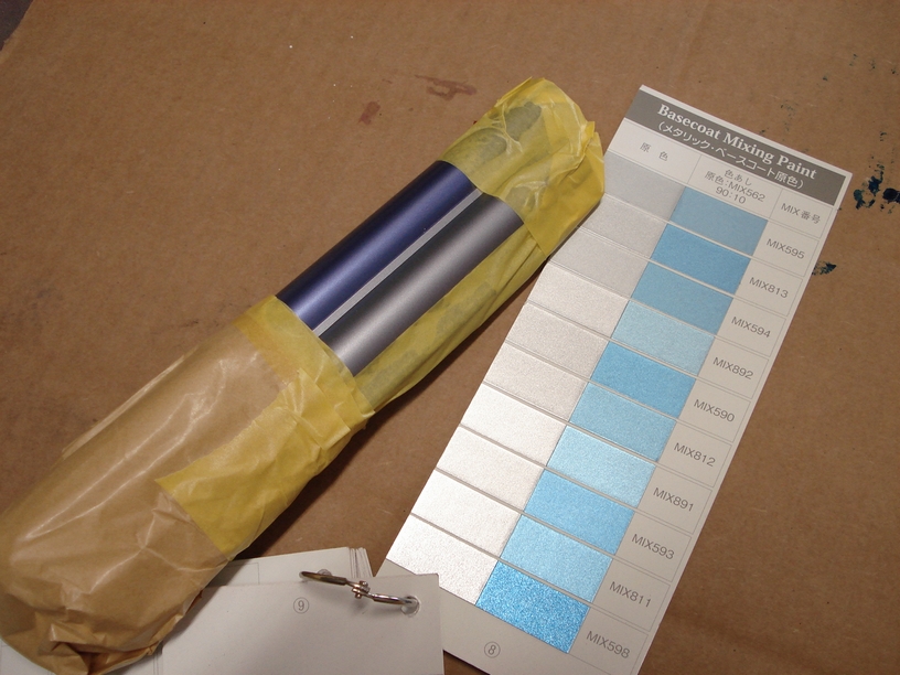 私が元々やっていたのは「修理」の塗装ですので、実は「色の基準」と言うのは持ち合わせていません。いつも何かしらの基となる「色見本」があり、それに対して色を作る、合せるといった作業になるのです。