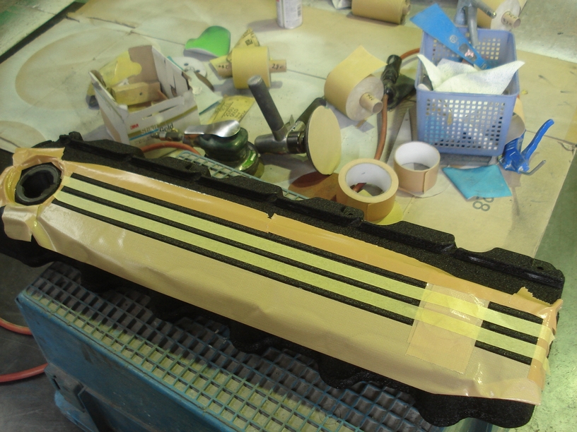 凸部を面研したら最後にクリアーを筆で塗ります。と言っても普通のクリアー(2液ウレタン)ですので完全硬化した後にガムテープを張って剥がすと一緒に剥がれてしまうと思います。「プライマー」を塗っていないのでこれは仕方ありませんね(なので無料なのです)。