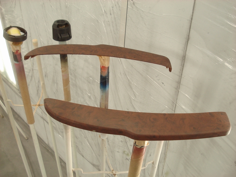 そもそも当店の塗装の場合、絵を描いたり派手な色のグラデーションなどとは違ってかなり地味な塗装なので(苦)、ちょっとした事でも誤魔化しが効かない所もありますからやはり神経は擦り切れます。まあそれが好きでやっているんですけどね(笑)。 派手な装飾よりも素材(塗装)本来の美しさが上手く表現出来れば…と思ってやらせて頂いてます。理想は「え?これ塗ってるの?!」ですかね(爆)。