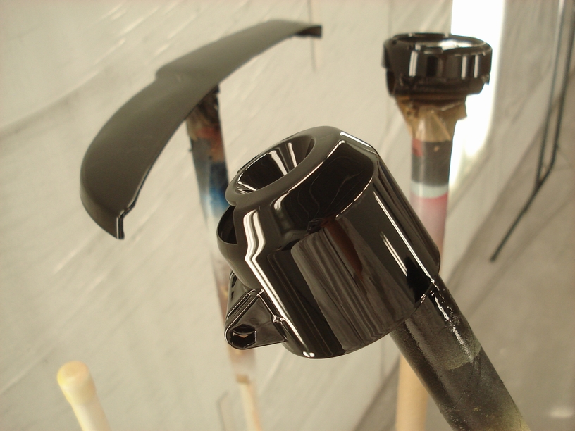 ちなみにバイクのトップブリッジも艶消し黒ですのであちらと一緒に本塗りを行います。小物塗装はこうやって採算を合わせている訳ですね(苦笑)。もう少々お待ちくださいませ!