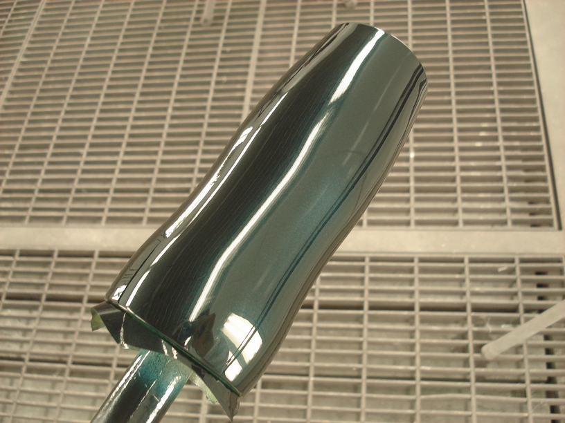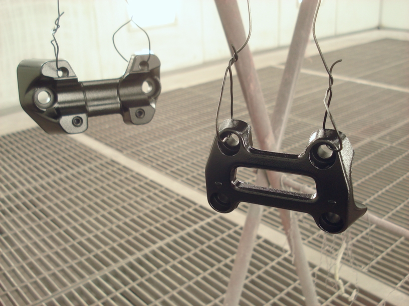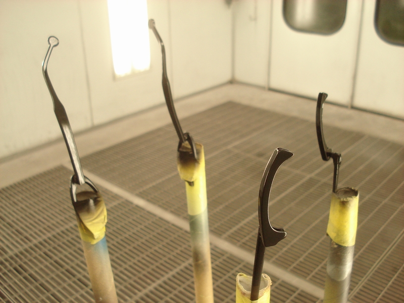 サンドブラストを終えた後にはリン酸処理を行っています。サンドブラストを行った場合はリン酸処理は省いてもOKなのですが、脱脂清掃も兼ねて考えてリン酸を使ってしまえばそんなに手間では無い場合ではこうしています。
