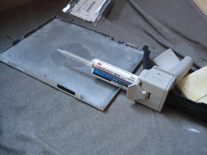 使ったのは自動車板金塗装ではメジャーな製品の「3Mパネルボンド」なのですが、いつもは大型のガンで使っていますが丁度接着剤を切らしてしまったので先日買った小型のタイプを使う事にしました。