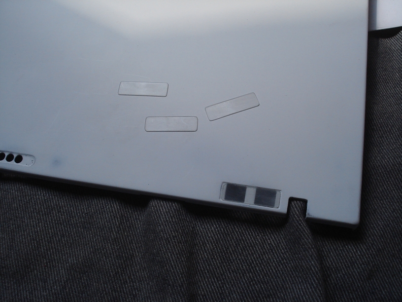 天板素材がマグネシウムなので、それだと内部に組み込まれる無線アンテナの電波が外に出ない?みたいなのでそこだけプラスチックのメクラ蓋になっているそうです。 なので今後外す必要もないとの事ですからここはエポキシ接着剤で固定してしまっています。