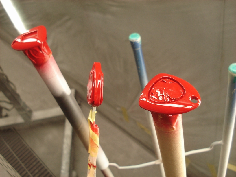 以外にもこういった小さい製品の塗装は面倒で、特に手前の三個は裏表の塗装になっているので結構なお値段になってしまっています。総額だと結構掛かっているんですよね…。