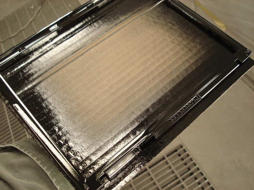 こちらは内側に付くのモニター周りの「枠」ですね。表面はザラザラとしたシボ模様だったので仕上がりも艶が引いたような状態ですが面積が少ないのですから目立ちませんしね。ここだけが「元の色のまま」がマズかったのかと思われます。