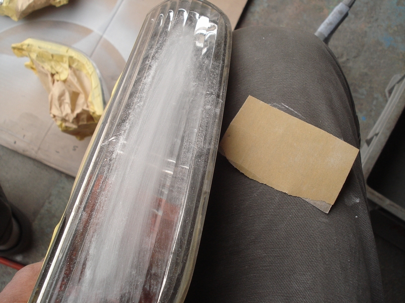 ただどうやらこのレンズは表面にコーティング(塗装?)が施されているようで、その被膜が一部切れました。「切れた」と表現するとちょっと引いてしまいそうですがこれは塗装屋が使う言葉でして、要は下地が露出した事を指します。その上に塗ってある塗膜が削り取れてしまうと「切れる」と言ったりするんですよね。私も不思議ですが感覚的には確かにそんな感じです。
