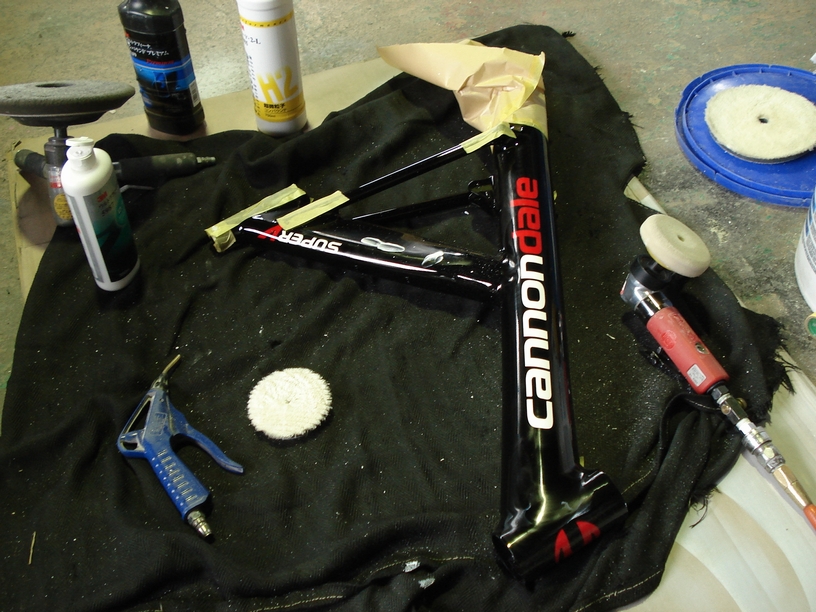 -723- cannondaleフレーム一式 磨き作業