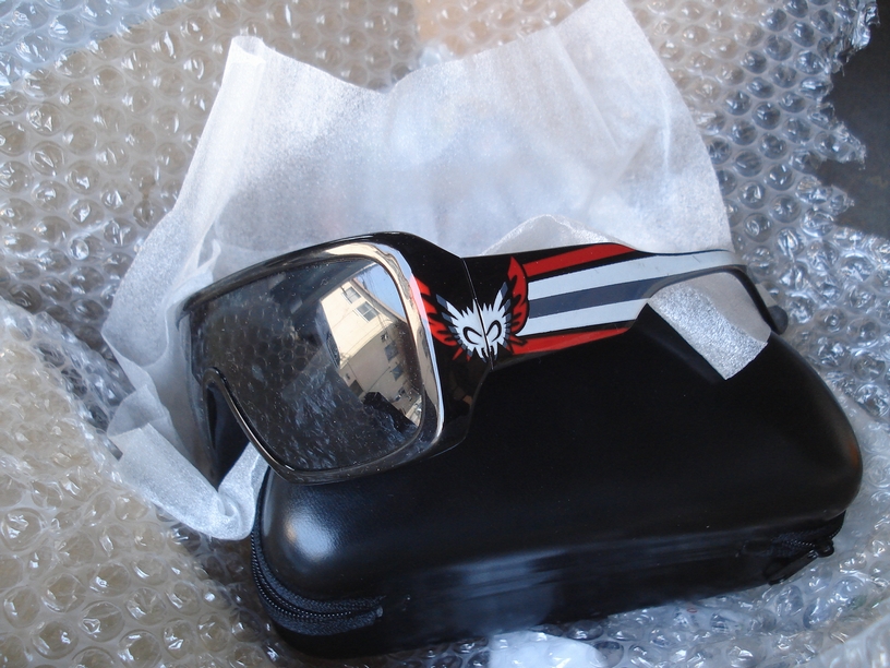 こちらも先日無事到着しております。サイドにちょっと派手目な絵柄が入ったサングラスフレームですね。