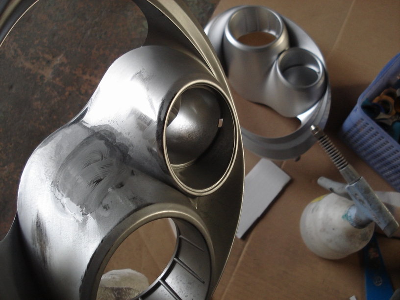 と言う事で既存の塗装は綺麗に洗い流したのですが、素材自体はプラスチックですから作業は慎重に行っています。溶剤によってこんどはメッキがペロペロとめくれて来る可能性もありますので(それはもうドツボです…)。
