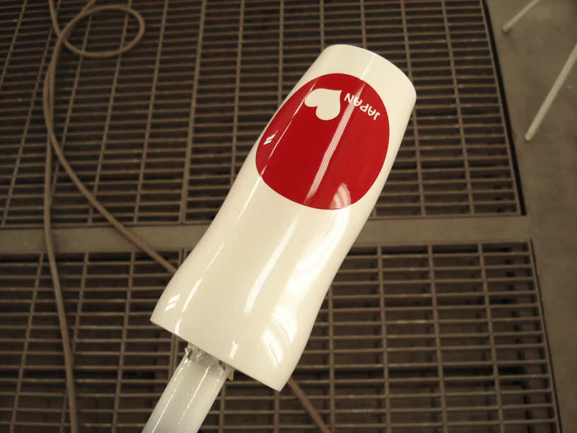 ちなみに各文字型に切り取ったシートは一文字ずつ手作業で貼っていきます。と言っても既に本塗り中ですので極力手は触れないようにしながらの作業になります。