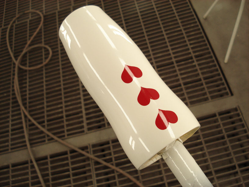こちらは直線的なラインでハートのサイズも小さいのでマスキングも苦労せずに出来ました。白のベースに赤が映えて良い感じですね。