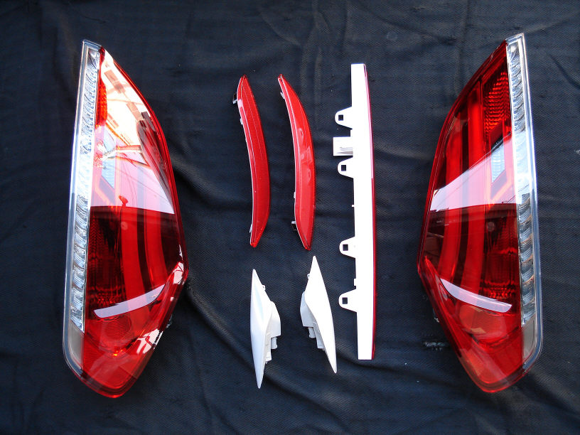 ご依頼品は左右のテールランプとハイマウントランプ、そしてリヤバンパーのリフレクターランプ、サイドマーカーです。 以前行った業者さんからのご依頼案件と同じ様な内容で、その時よりもスモークの濃度を薄くした仕様ですね。