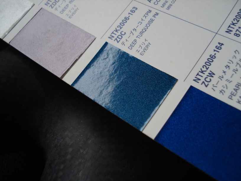 御依頼頂いた色は「ディープターコイズブルーPM」で、最後の「PM」は「パールメタリック」の略です。