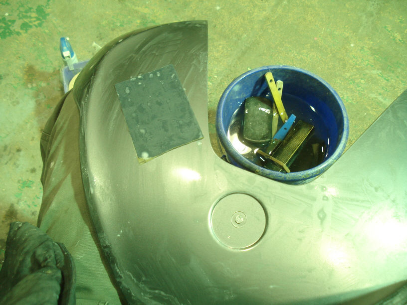 ただ大抵の場合はクリアーの下にシール或いは顔料系のプリントが貼ってあって、それだけを綺麗に剥がすなんて事は不可能ですので、結果全体的な研磨になってサフェーサーの塗布も必用になるのです。このまま本塗りには行けませんので…。