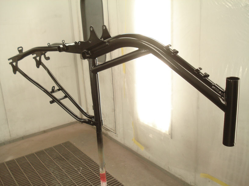 車体は新車で傷も無い状態ですから剥離作業は行わず、既存の塗膜は残したまま足付け処理だけして本塗りに入ります。素材が鉄なので結構重いんですよね。