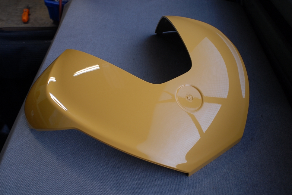 大変お待たせしました!BMW(バイク)に装着されるリヤケースのトップカバー、完成となります。