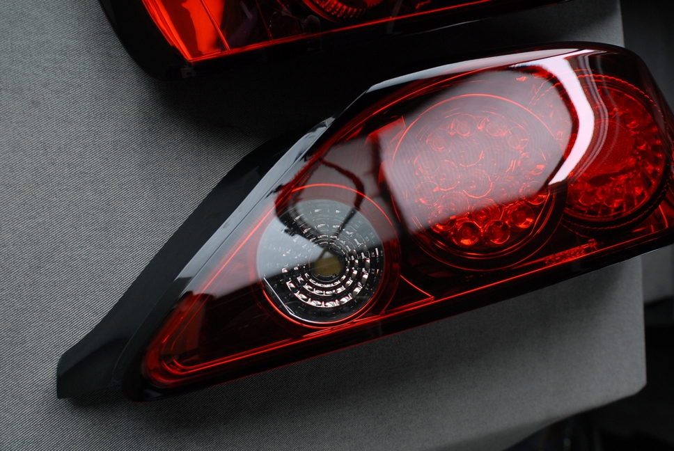 結果、こういったテールランプではちょっと信じられないようなスプレーの仕方で塗っていたりします。クリアー抜き部分の中心から放射状な方向でのスプレーですね。実際の現場を見たらちょっと引きますよ(爆)。傍からそんなんで綺麗に塗れるのかって感じです。まあ非常にネチネチした塗り方ですかね(苦笑)。