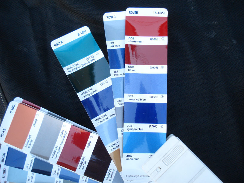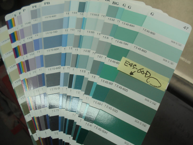 画像に写っている色見本帳は、先日こちらの掲示板でもご相談があった「日本塗料工業会」の色見本帳でして、主に建築塗装に使われる物かと存じます(私が育った自動車塗装では使わなかったですので)。