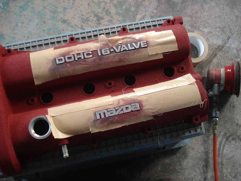 ちなみにサージタンクはシルバーと赤の2トーンカラーですからそれぞれ別に塗りますので、今回はロードスターのヘッドカバーも赤系ですからそれぞれ同時に作業進行しています。