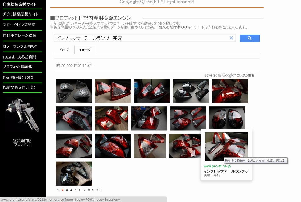 画像は試しに「インプレッサ テールランプ 完成」の3点のキーワードを入れてみた状態で、こうすると完成画像ばかりを選んで表示してくれたりします。