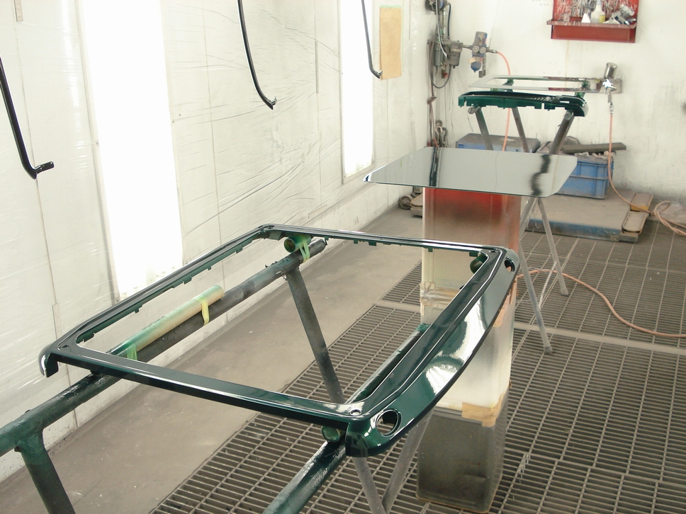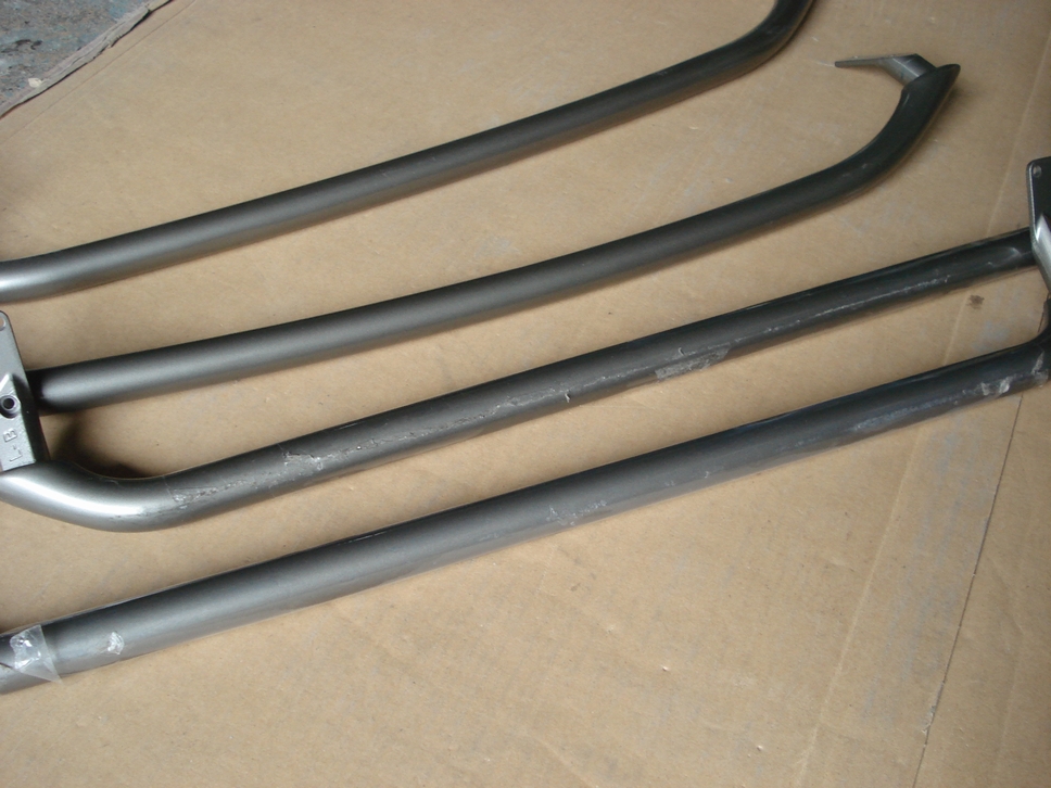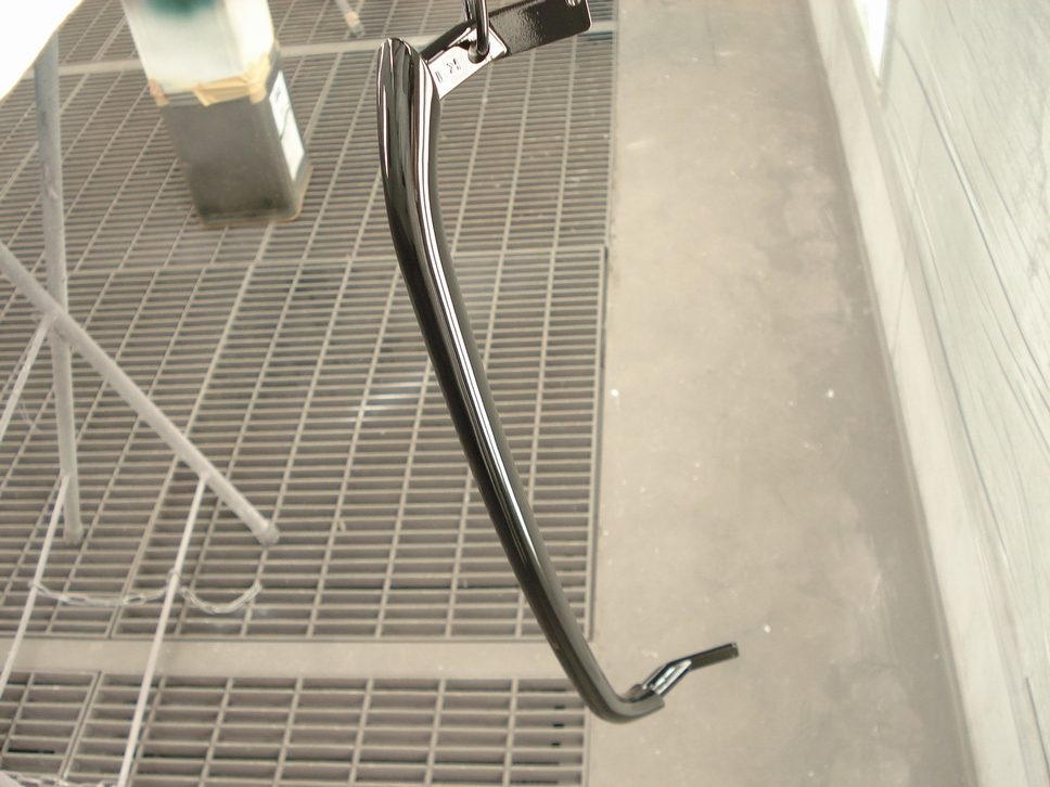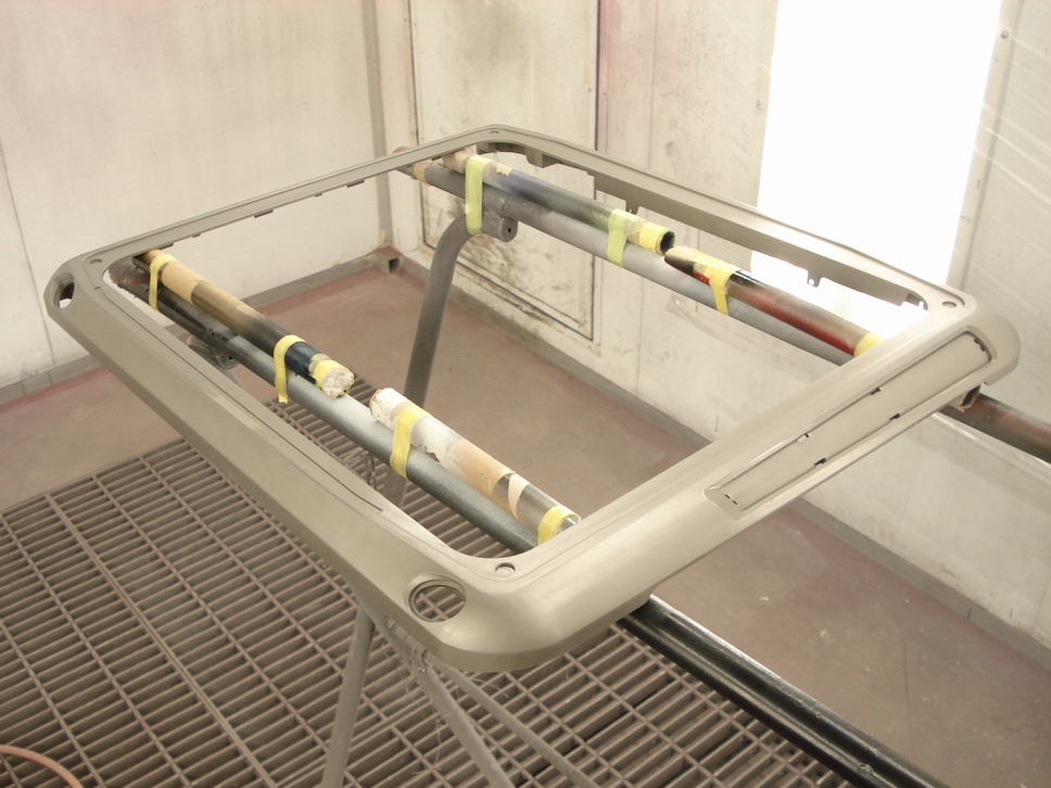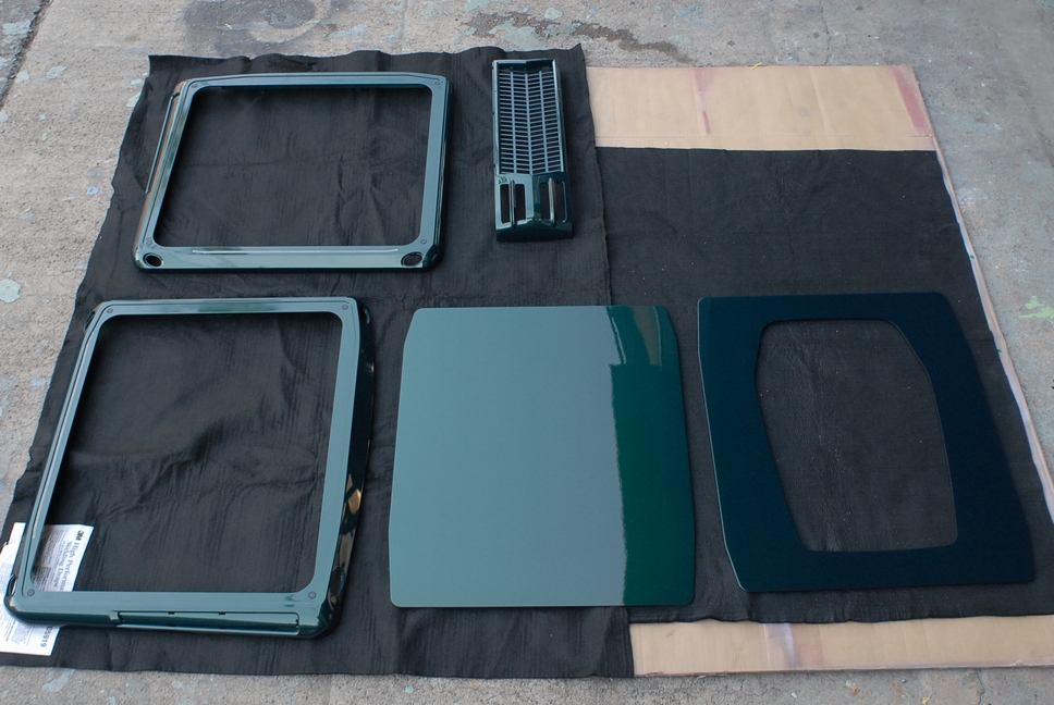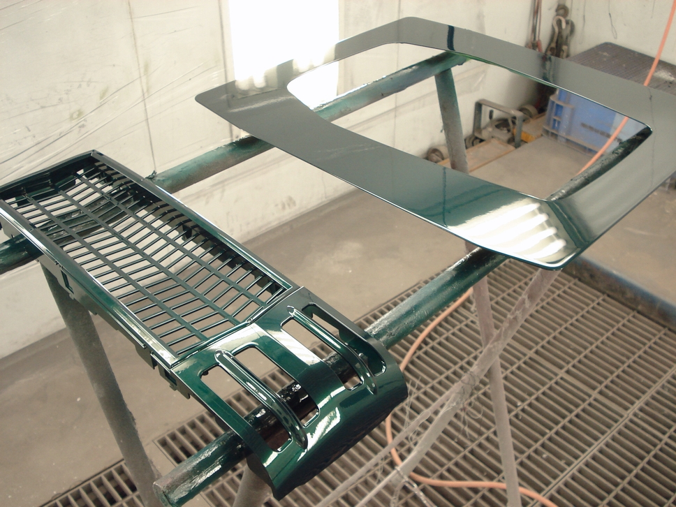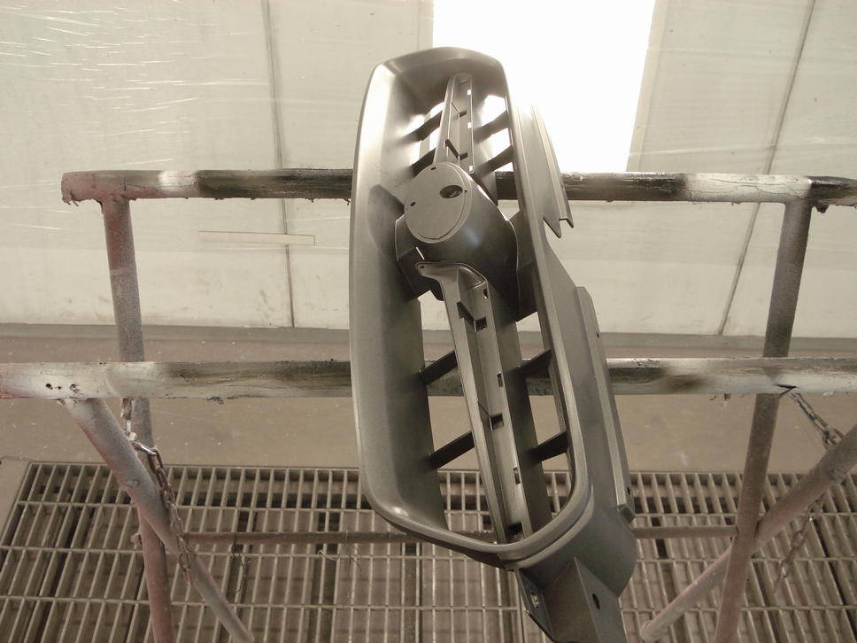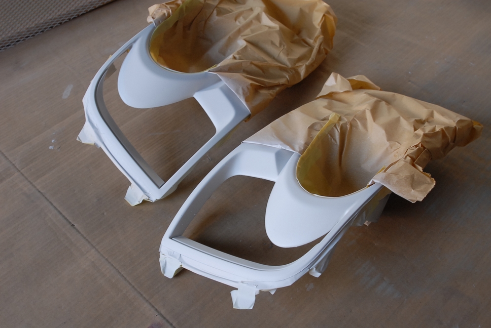 画像は本塗り前の状態で、新品時の塗膜に足付処理が施された状態です。 状態としては新品同様でしたので傷などもありませんから、こういった部品は簡単な下地処理(=足付処理)のみで塗装可能です。