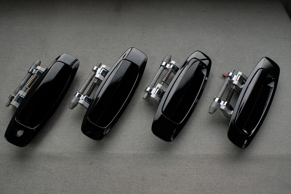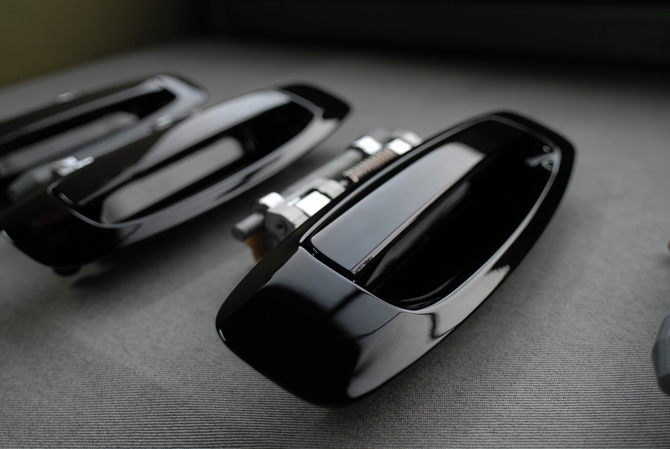 大変お待たせしました!ステージアのドアハンドル一式、艶有りブラック(カラーコード:KH3)で完成です。