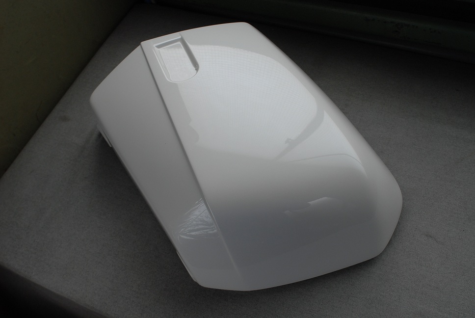 FRP製品の場合は造り手によって仕上がりが全然違っていたりして、今回のメーターカバーはその点悪い出来具合ではないのでサフェーサーの塗布〜研磨は必要無い判断しました。まあ一枚ものだから巣穴が無いって言うのもあるんですけどね。