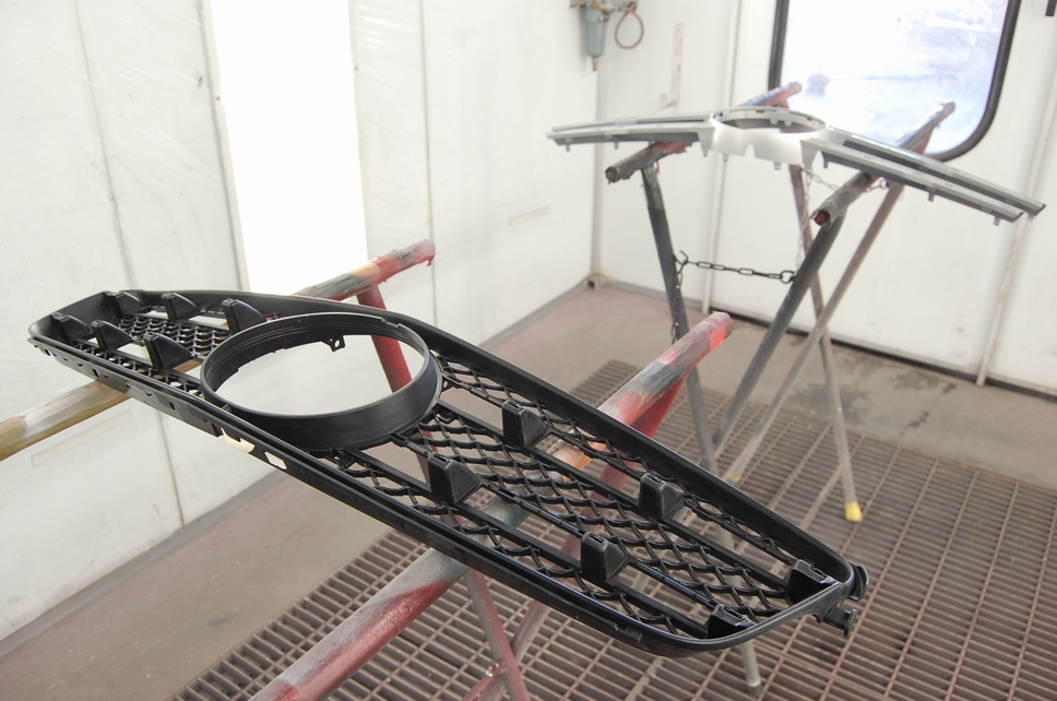 -2379- メルセデスW204クーペフロントグリル 本塗り完了です!