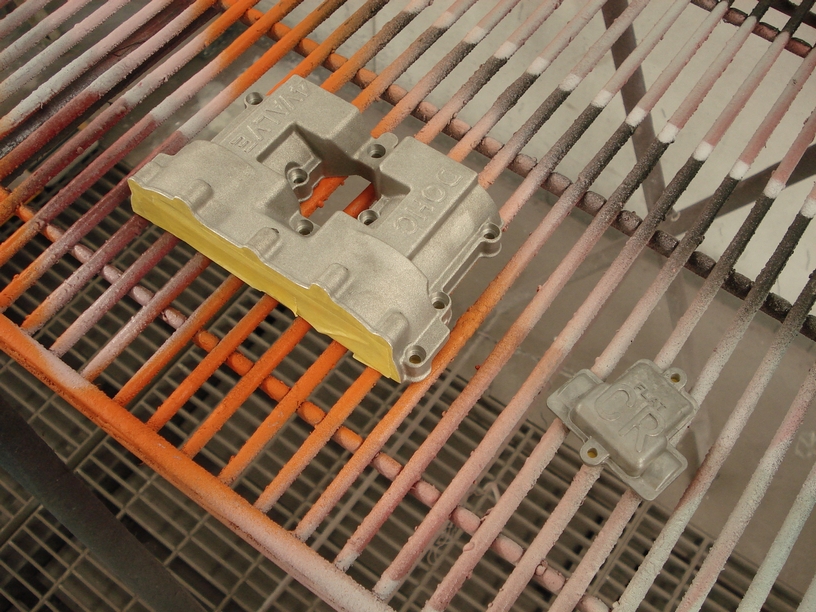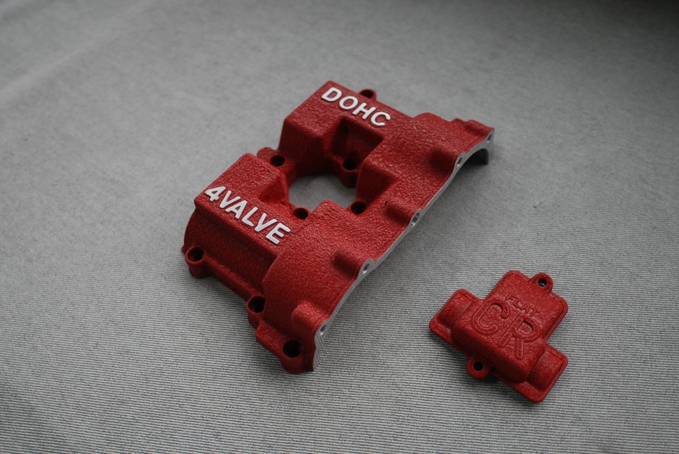 ヘッドカバーの方は凸文字部を面研して光らせています。こんな小さい部品でも塗装されると立派に見えますよね(笑)。