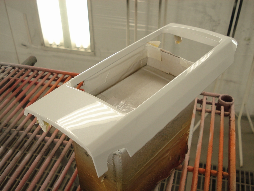 樹脂素地の部品にはプラスチックプライマーを塗布し、いよいよ本塗り開始です。