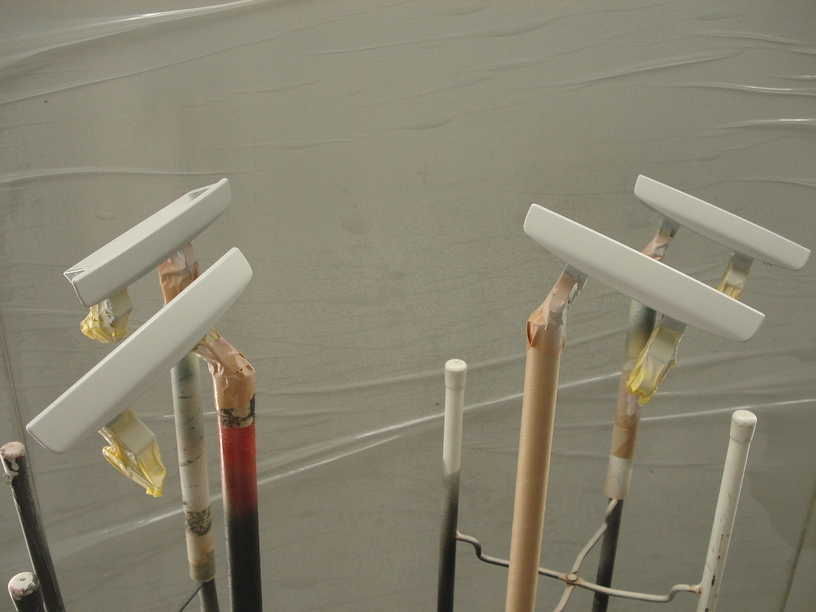 ちなみに白系の塗装はこうやって見ると「磁器」にも見えますよね。私的には磁器の釉薬が結構好きで(そもそもガラスが好きです)、実はちょっと前に某有名大学が関係した?アート作品の塗装の御依頼があったのですが、土壇場になってキャンセルとなってしまいました。 理由は展示会場が中国だったとの事で、最近のドタバタで開催自体が中止となってしまったそうです。