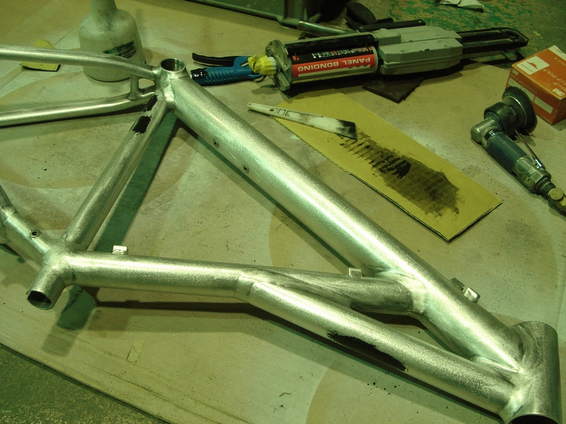 既に本塗りを終え焼き付けも済んでいるのですが、いつものように塗装後の画像がありません(謝)。結晶塗装は普通の塗装と比べて強制乾燥の工程が違うので写真が撮り難いのです。申し訳御座いません…。