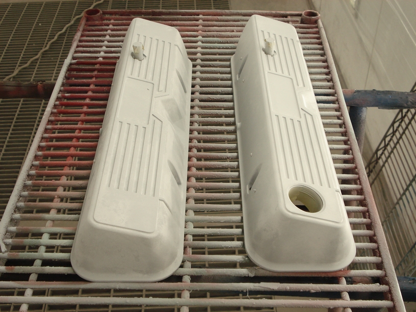 こちらは「オレンジ」の結晶塗装で御依頼頂いていますが、プライマーの塗装と焼き付けの工程は同じになりますのでレンジローバーのヘッドカバーと並行して作業しています。小物塗装はそうやって幾つかの案件を同時に作業していかないと採算を合わせるのは難しいですが、幸いにして今まで御依頼が途切れるような事は無いのでちゃんと仕事として成り立っています(当たり前の事ですが当初は結構冒険みたいな感じだったのです)。