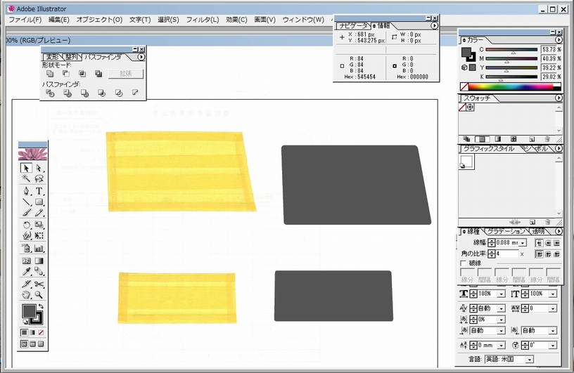これは実際にカットして貼ってみないと判断出来ないので、マスキングシートを0.5mm刻みで修正して確認しています。
