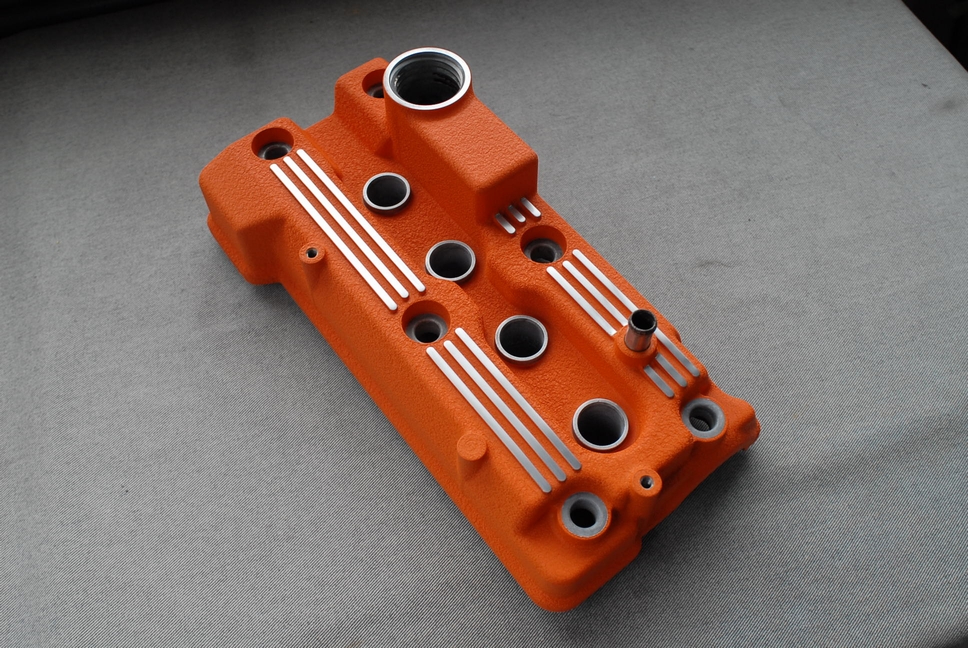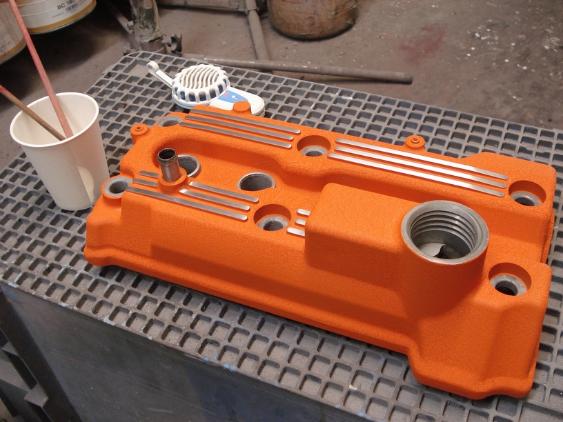 このヘッドカバーも結構な汚れ具合でしたが、今回の御依頼で新たに綺麗なオレンジのヘッドカバーに生まれ変わったかと思います。エンジンルームが華やかになりそうですね。