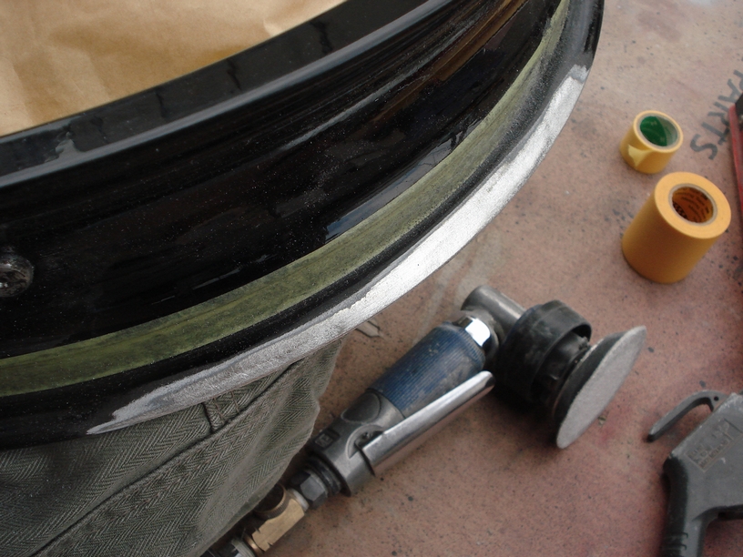 最初の研ぎ出しは#120程度と粗いですが、この時は例のマスキングテープを張ったまま研いでいるのでテールレンジ自体に傷が付くことはありません。 そのまま#180→#240→#320まで研ぎ落とし、その後マスキングテープを剥がしたら#600→#800で仕上げます。