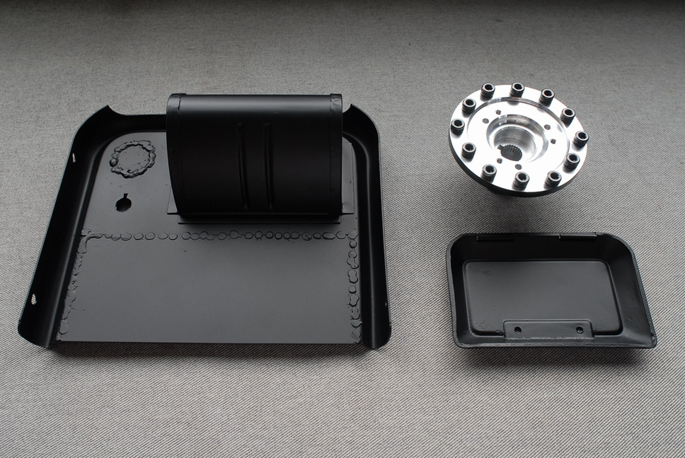 大変お待たせしました!車種は解りませんが恐らく相当古い車体に装着されるであろうコンソールパネルと、ワンオフ制作品?のステアリングボスは本日完成となります。