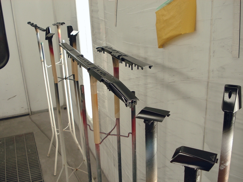 ベースコート自体はキャノンデールのフレームと同じなのでこれも一緒にブースに入れて塗っています。自動車用の塗装ブースですので小物塗装には広過ぎるくらいですからね。