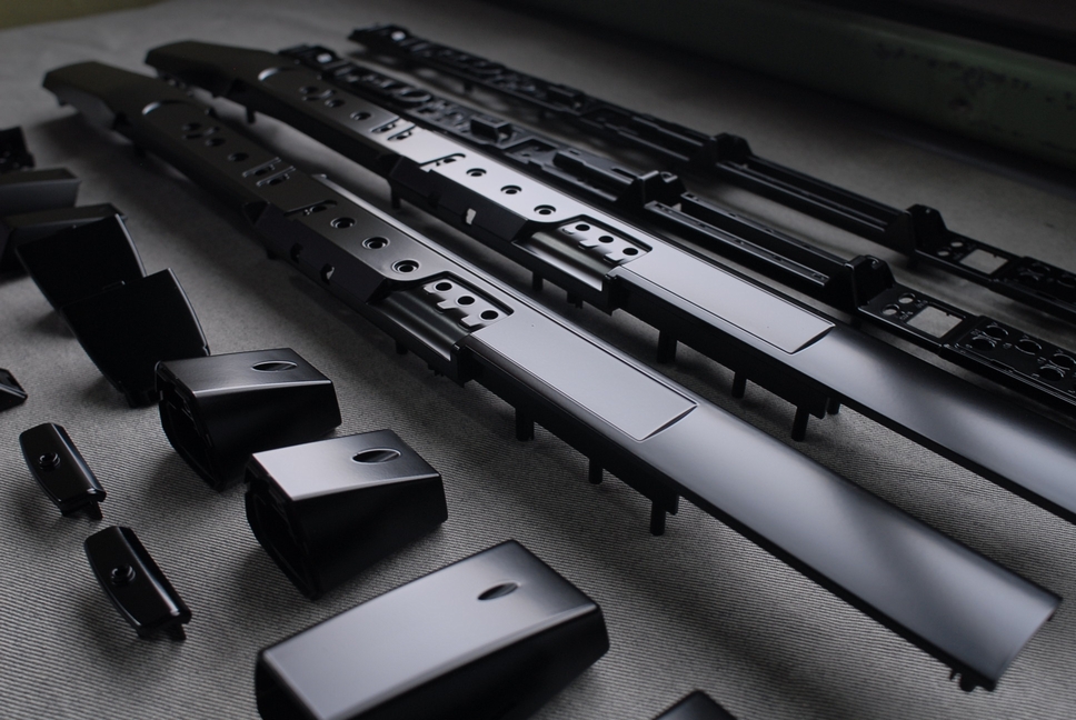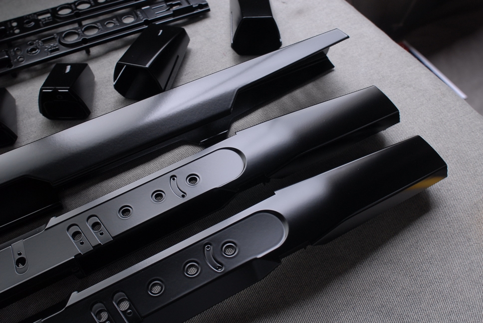 当初は「黒アルマイト」の色に合わせての色でご依頼頂いていたのですが、実は途中から変更となりまして「半艶黒」となりました。塗装品数も当初の数より絞って2セット分となります。