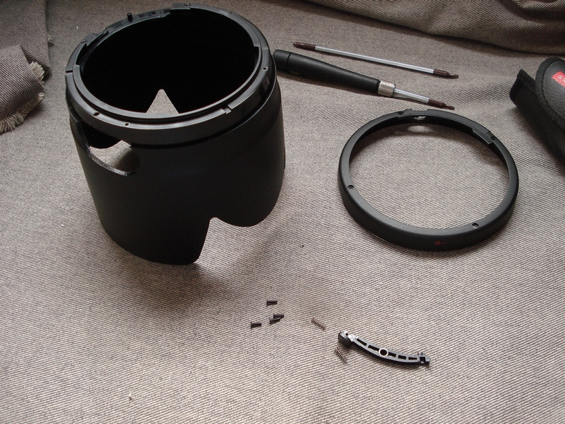 今回のレンズフードはPLフィルター?の調整が出来るように穴が開いてます。キャノンのサービスセンターでやって貰えるようですね。